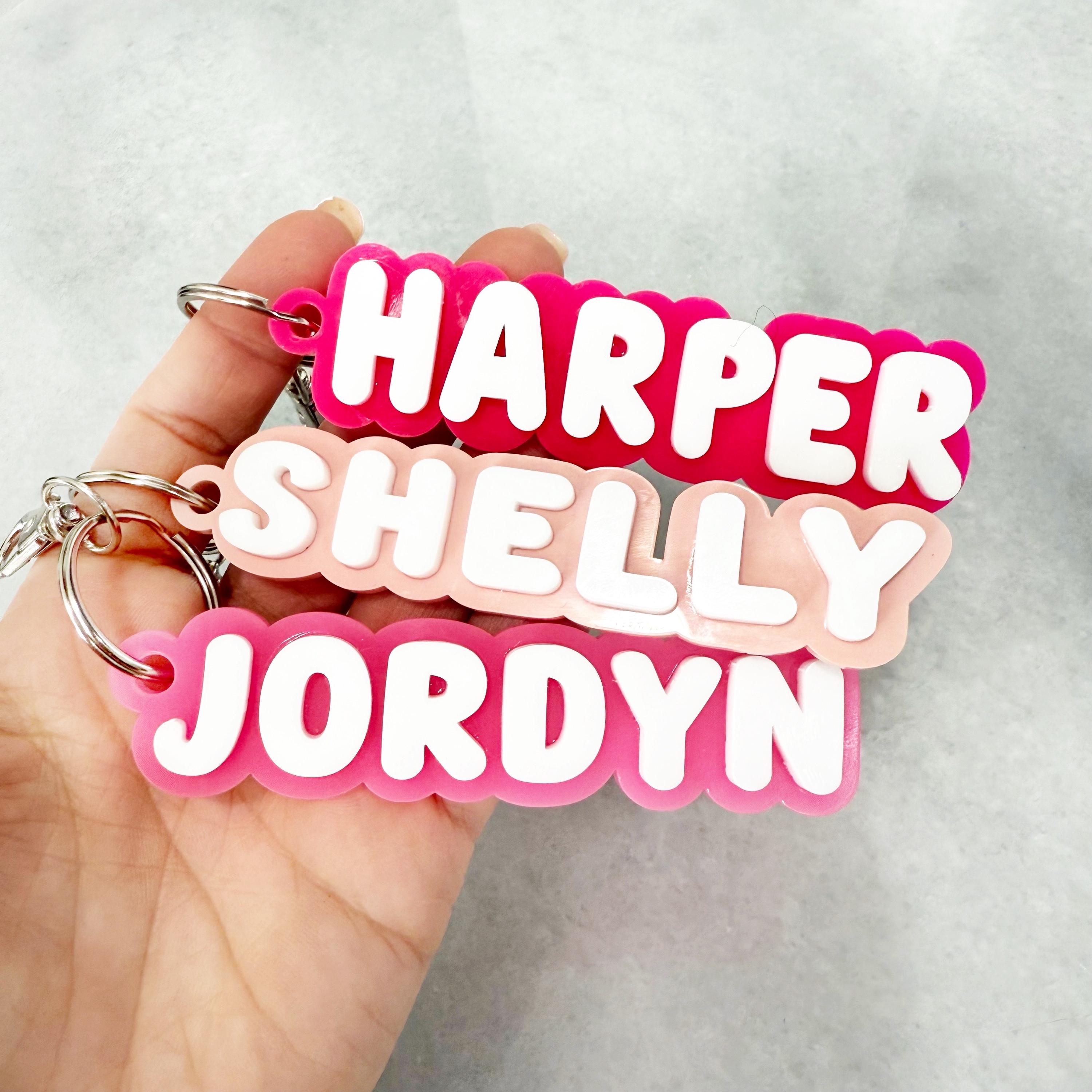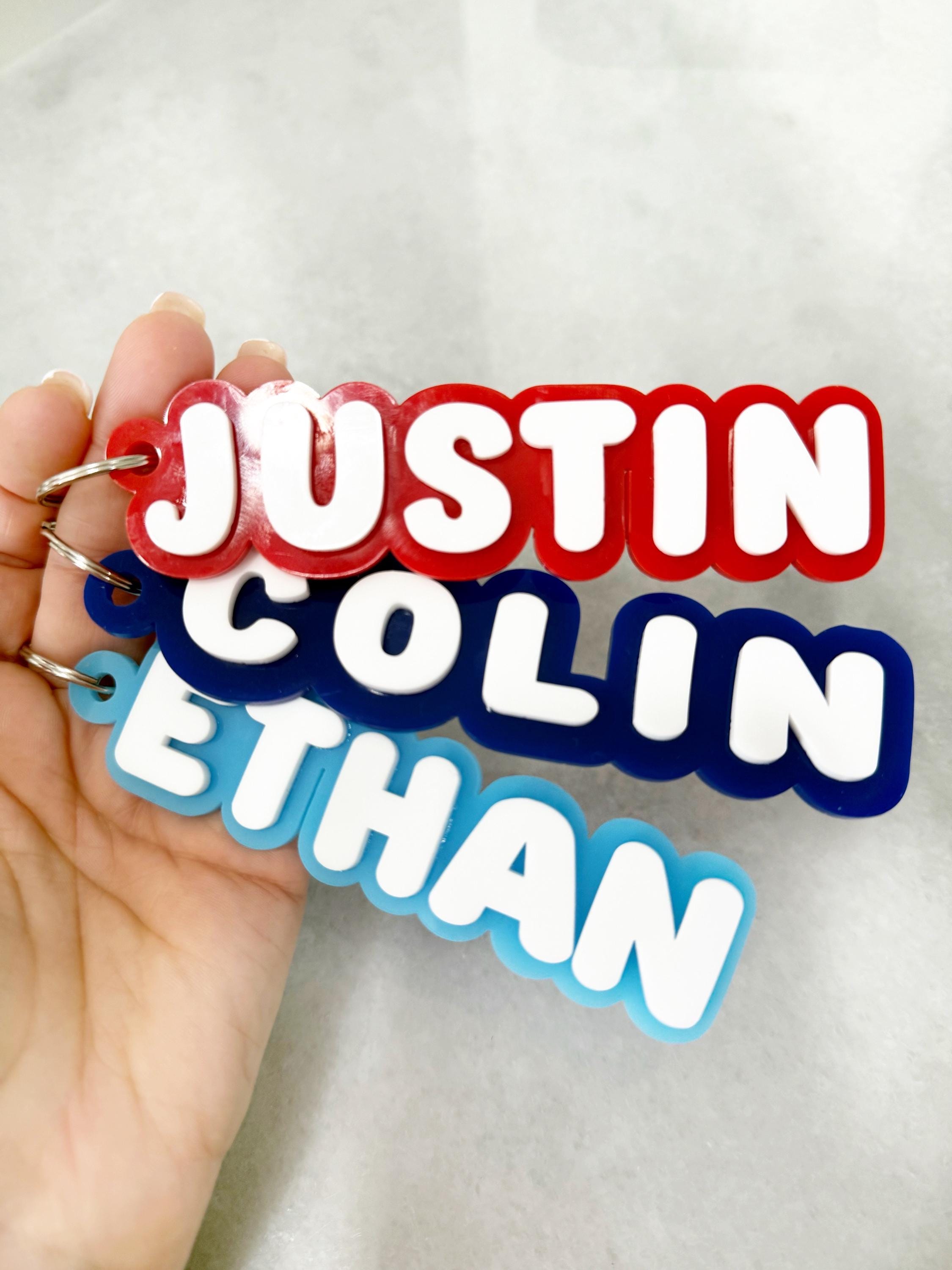 Please note: While my name keychains are made from durable acrylic, they are not unbreakable. They may crack if dropped, shoved against hard surfaces (like cubbies), or tossed under seats. For best results, attach the keychain in a spot where it won’t frequently hit the ground or walls.