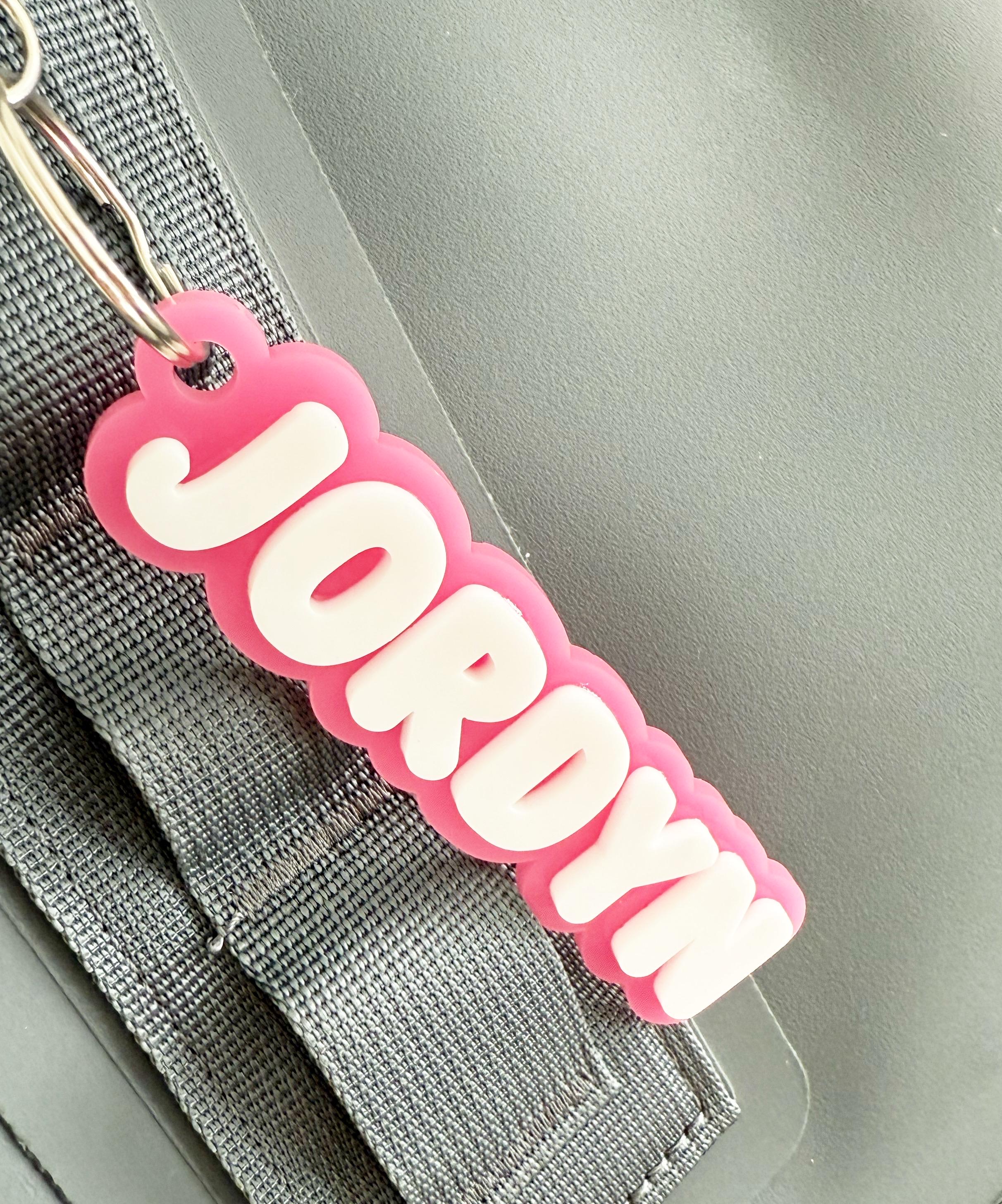 Name Keychains are the perfect personalized accessory for backpacks, lunch boxes, school bags, purses, sports bags, cooler bags, beach bags and more!
